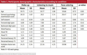 The researchers – led by Rocco Palumbo, a Cognitive Neuroscience PhD at Harvard Medical School – hypothesized  the makeup group would experience the greatest lift in positive feelings and therefore outperform the other two groups on the test.