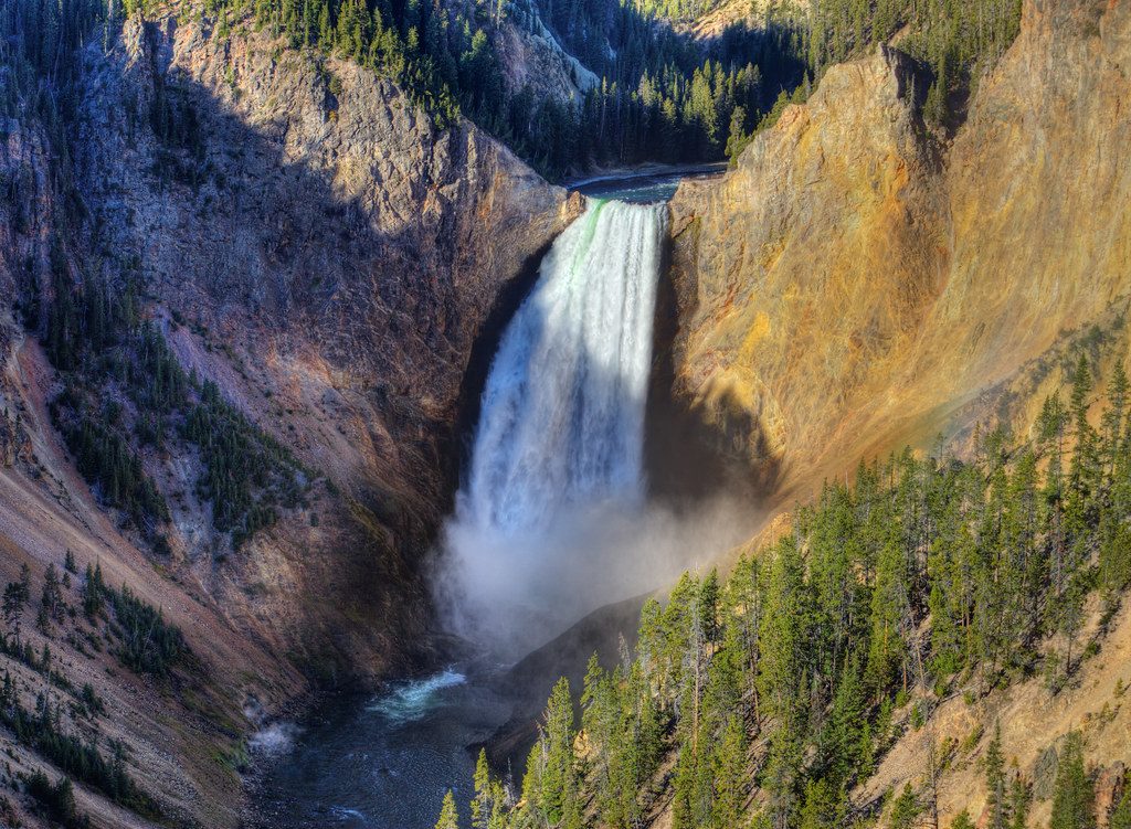 Lower Yellowstone Falls, Yellowstone National Park, USA. The lower falls are 308 feet (94 m) high, and is the largest volume major waterfall in the Rocky Mountains of the United States.