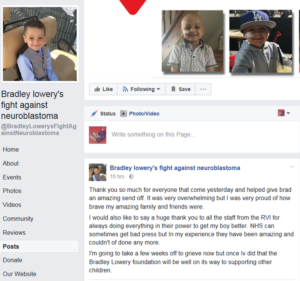 Bradley’s mum Gemma posted on his fundraising page Bradley Lowery’s fight against Neuroblastoma.